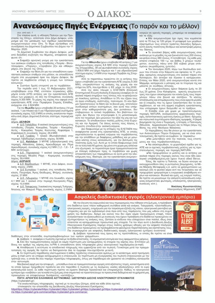 Την περίοδο από 01 έως 10 Φεβρουαρίου 2021, υποβλήθηκαν στην ΡΑΕ, επιπλέον τετρακόσιες εβδομήμτα εννέα (479) αιτήσεις για την εγκατάσταση ΑΠΕ (όλων των μορφών), σε όλη την Επικράτεια, συνολικής ισχύος 9.300 MW. Το μέρος της ισχύος που αφορά στην εγκατάσταση ΑΠΕ στην Περιφέρεια Στερεάς Ελλάδας, ανέρχεται στα 2.824 MW.