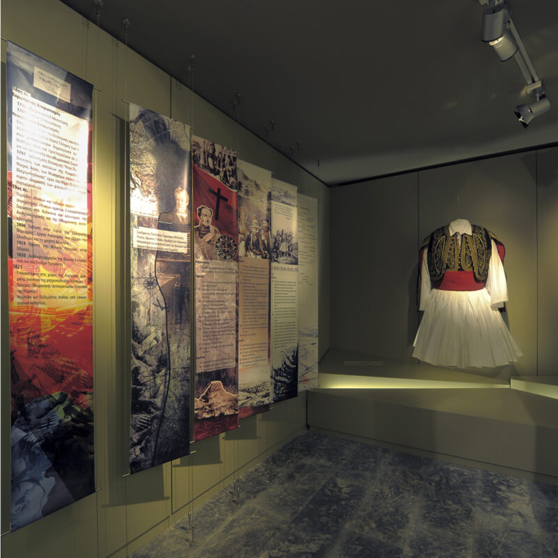 Στα εκθέματα του Μουσείου περιλαμβάνονται αυθεντικές φορεσιές, επιστολές και φωτογραφίες της εποχής, πίνακες και άλλα αντικείμενα. Παράλληλα ο επισκέπτης δύναται να ενημερωθεί για τη ζωή και τη δράση του Ήρωα από τη γέννησή του το 1788 στην Άνω Μουσουνίτσα Παρνασσίδας, έως το μαρτυρικό του θάνατο στην Αλαμάνα το 1821.